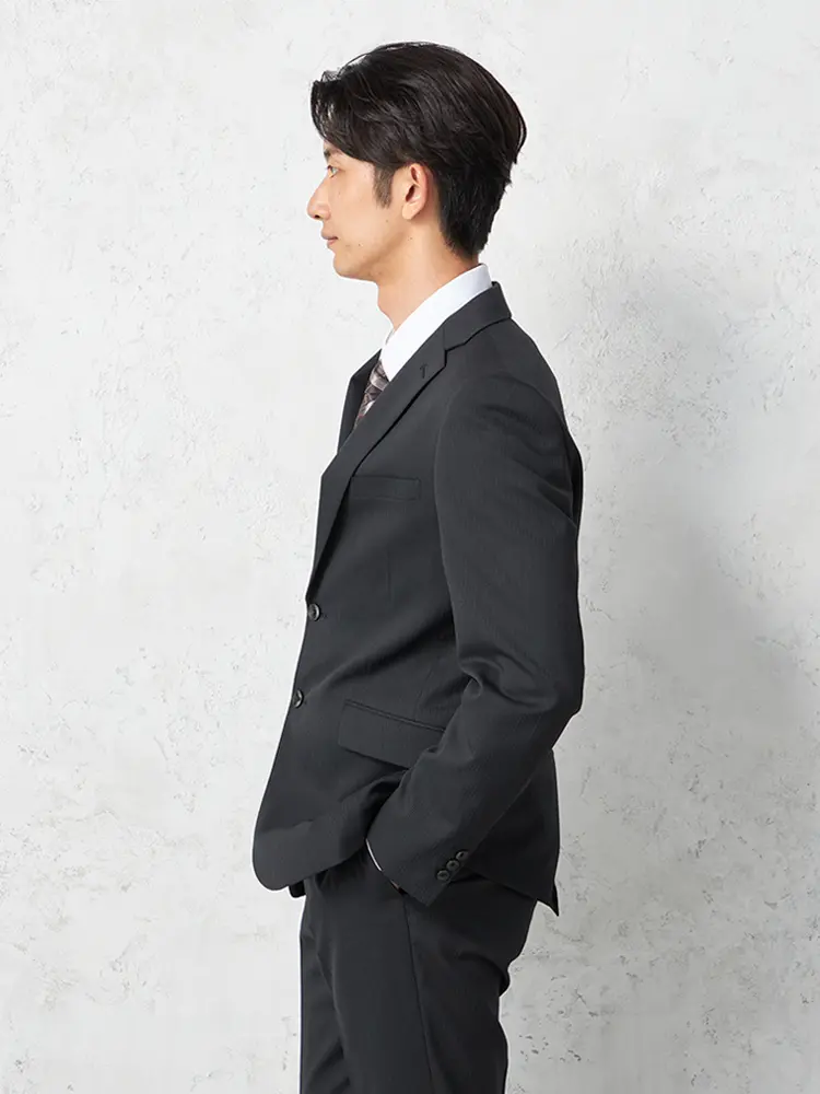 【上下ウォッシャブル】スリーピーススーツ2つボタンウール混ストレッチ・防しわ無地nero秋冬