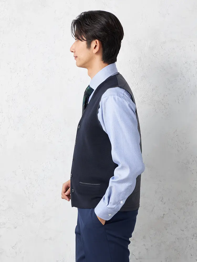 ニット地と中わた素材を組み合わせた上品なベストです。