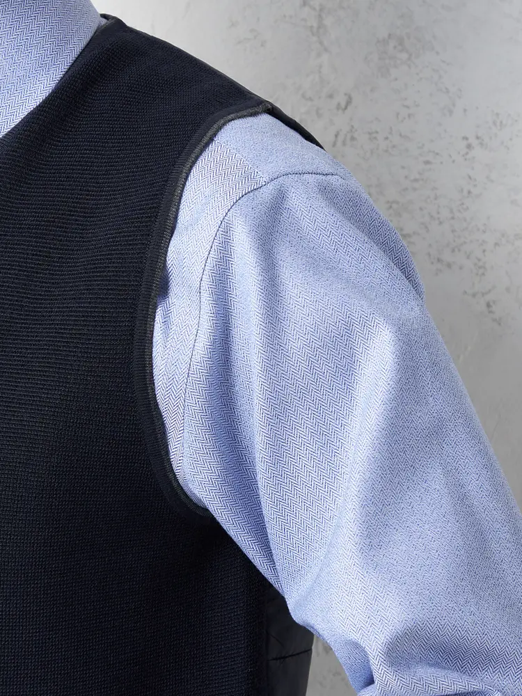 【ウォッシャブル】ヘリンボーン柄ニットジレ放電抗ピリングヘリンボンベストリッケンバッカー秋冬
