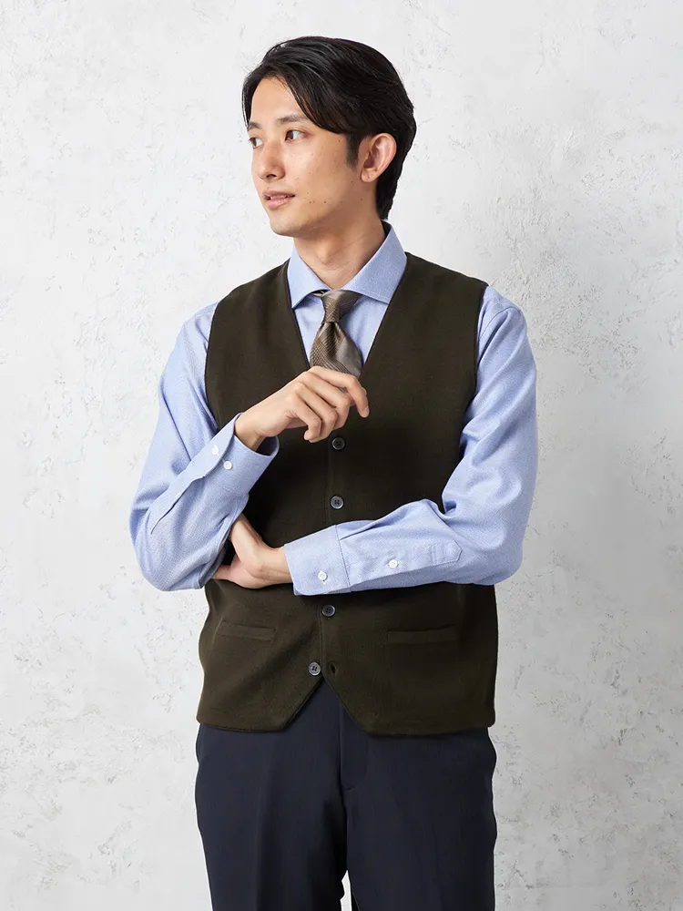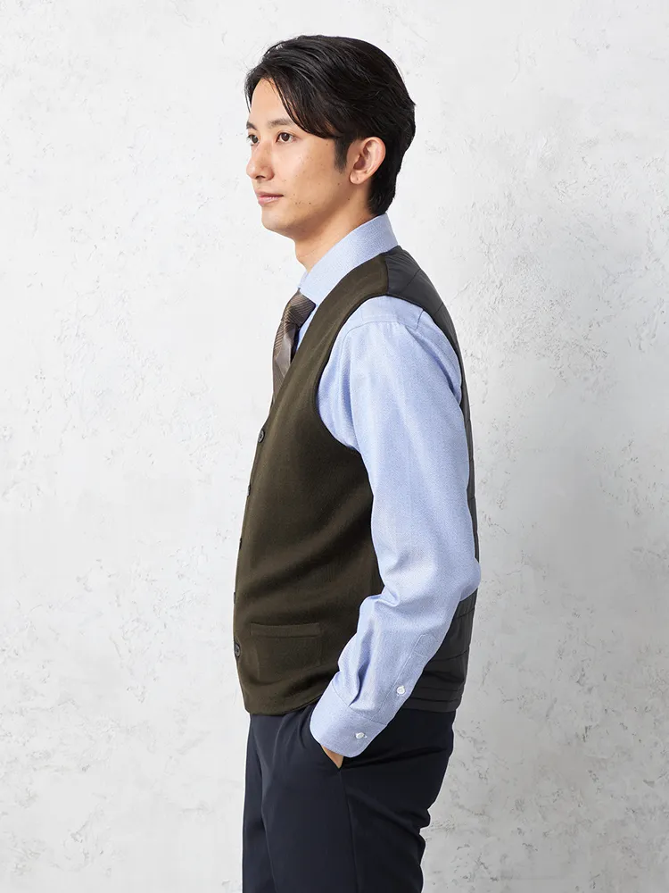 ニット地と中わた素材を組み合わせた上品なベストです。