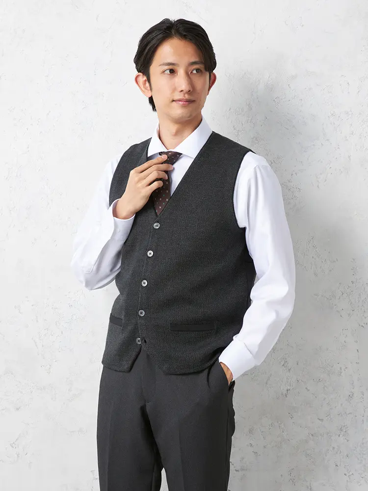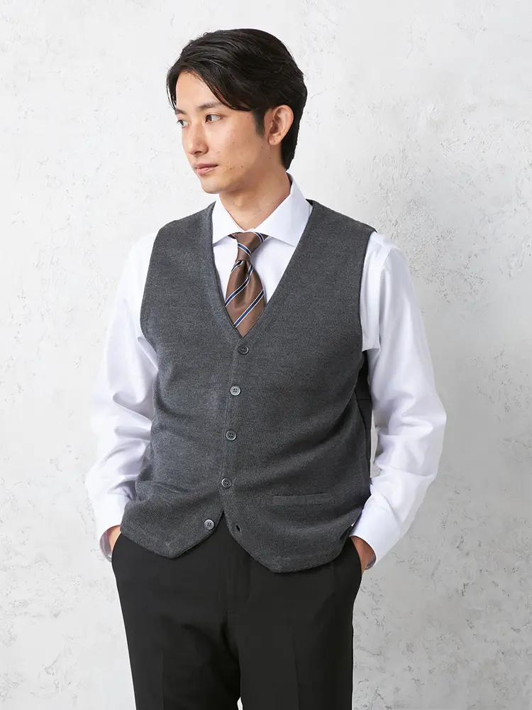 • C.グレー 【リッケンバッカー】 前身鹿の子後身キルトベスト カジュアルインナー ニット半袖ベスト 保温 秋冬 | はるやま公式通販