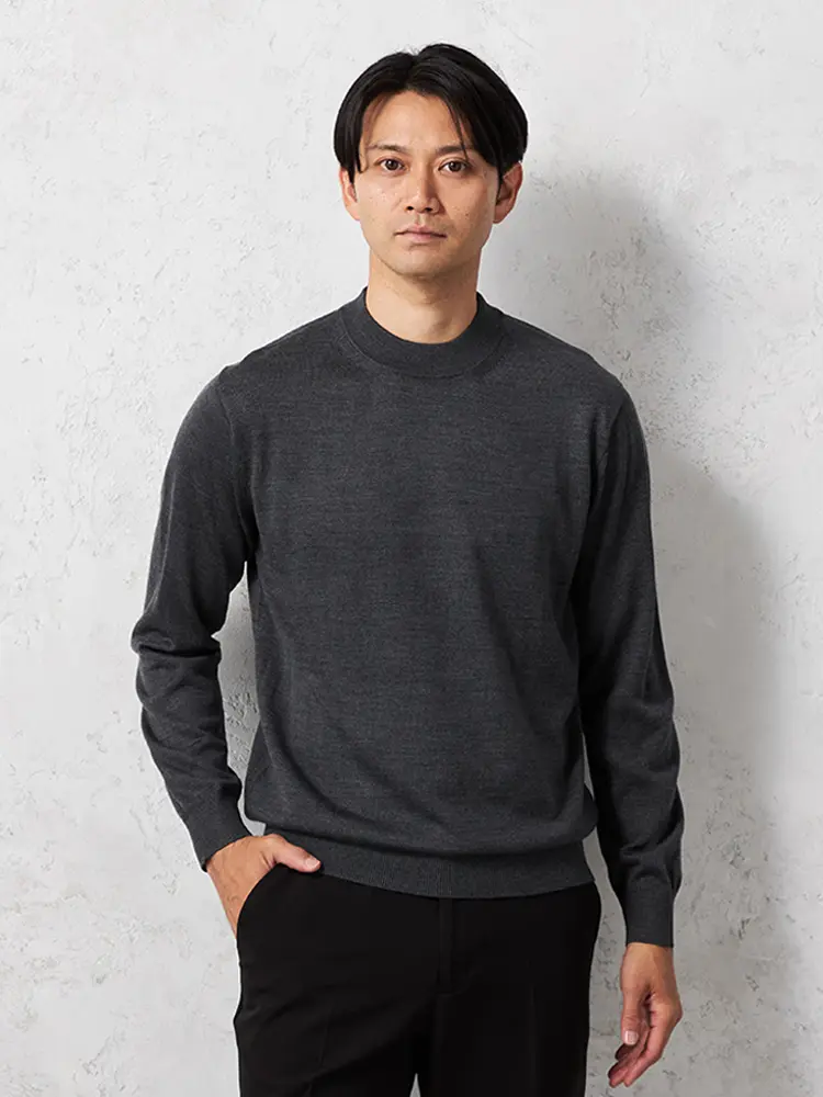 モックネックの首元が特長で保温性もあり、あたたかく着られます。