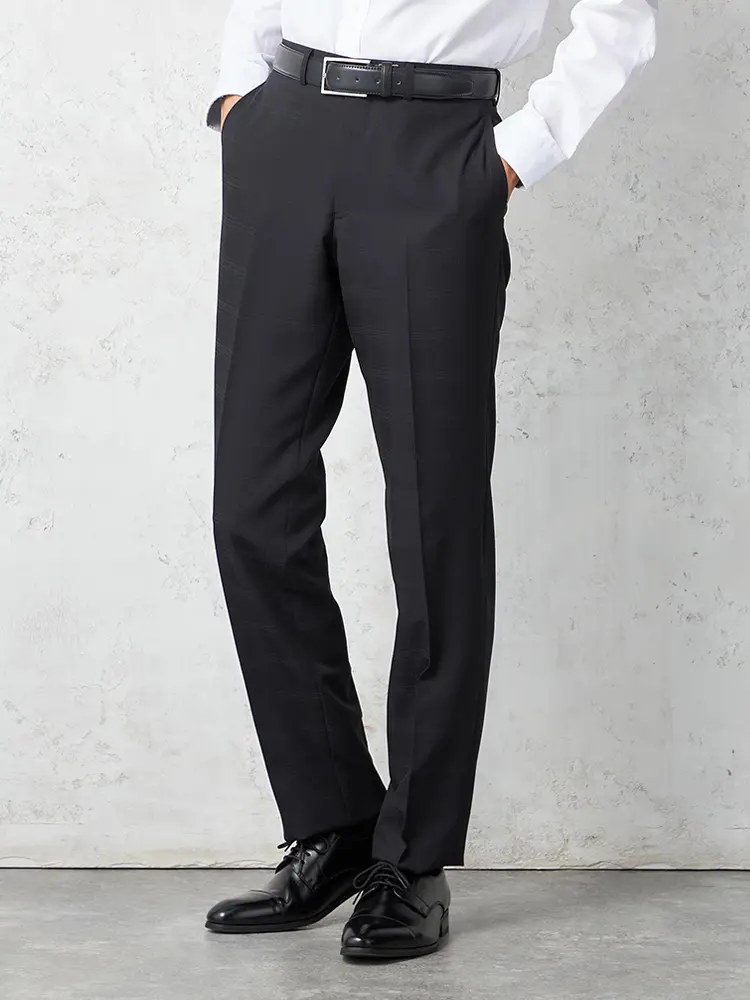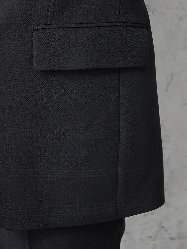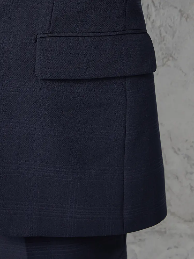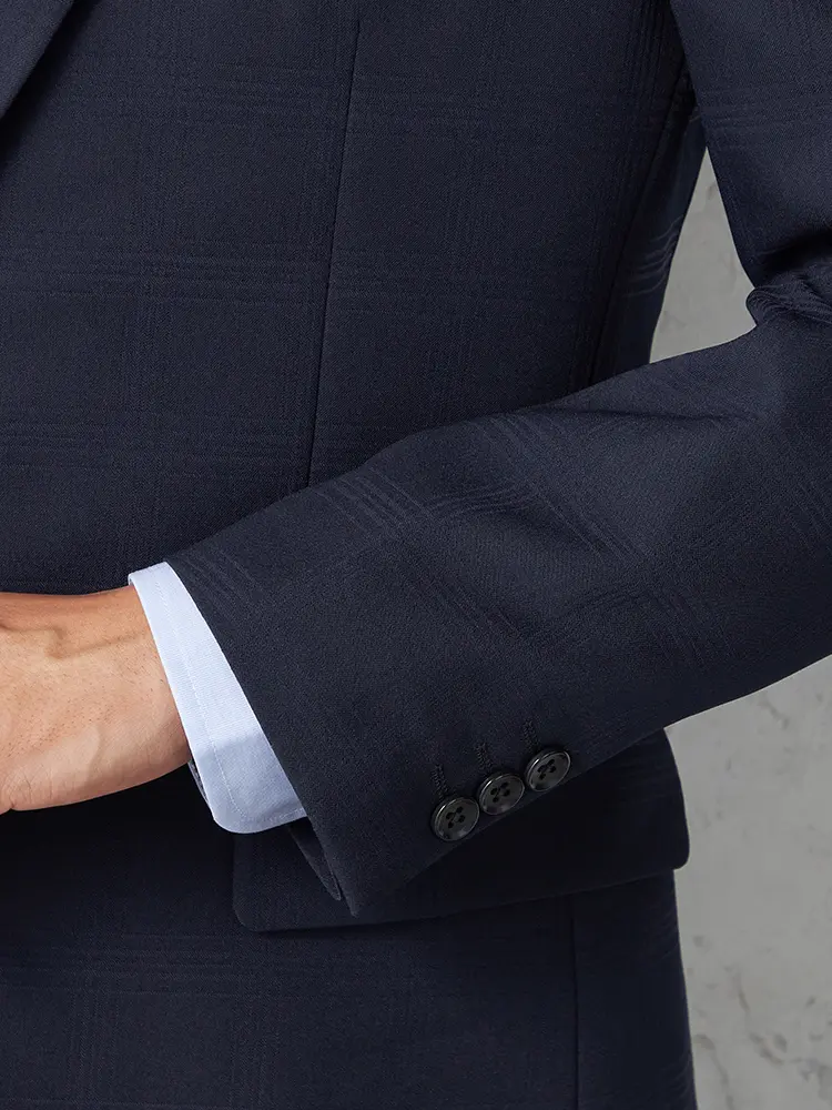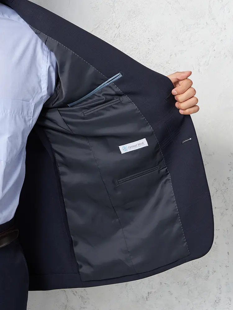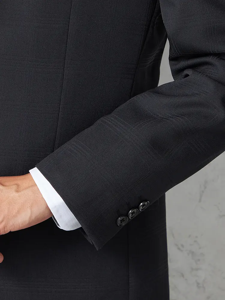 織りの変化によってチェック柄がさりげなく表現された上下ウォッシャブルのスーツ。