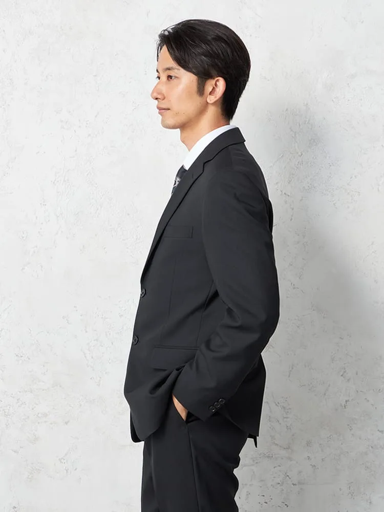 抜群のストレッチ性と嬉しいウォッシャブル機能付きのスーツは会議からテレワークまであらゆるシーンで活躍します。