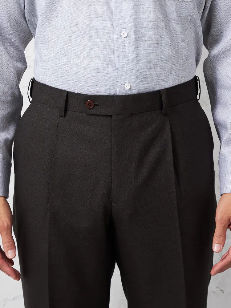 ビジネススタイルの定番にしたいイタリアマルラーネ社製ウール生地で仕上げたワンタックウエスト伸縮機能のスラックス。