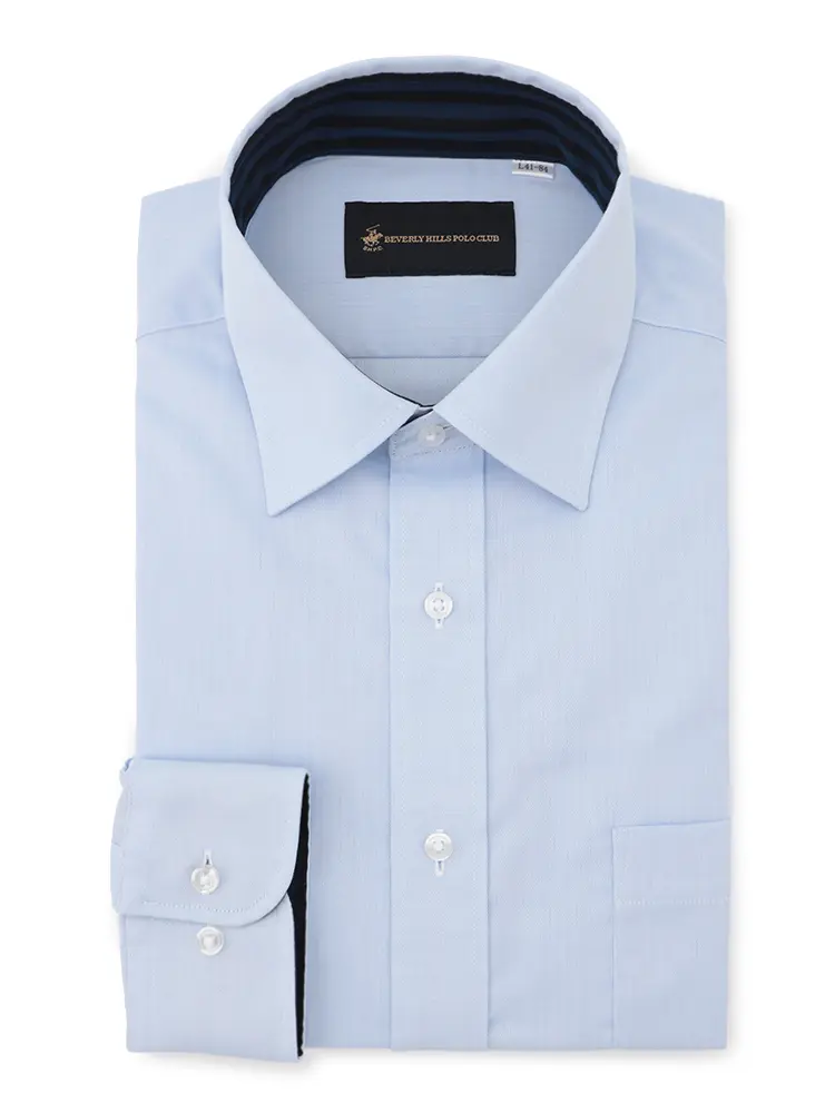 【ビバリーヒルズポロクラブ】 サックスドビー 長袖Yシャツ ワイド ヘリンボン 形態安定 通年