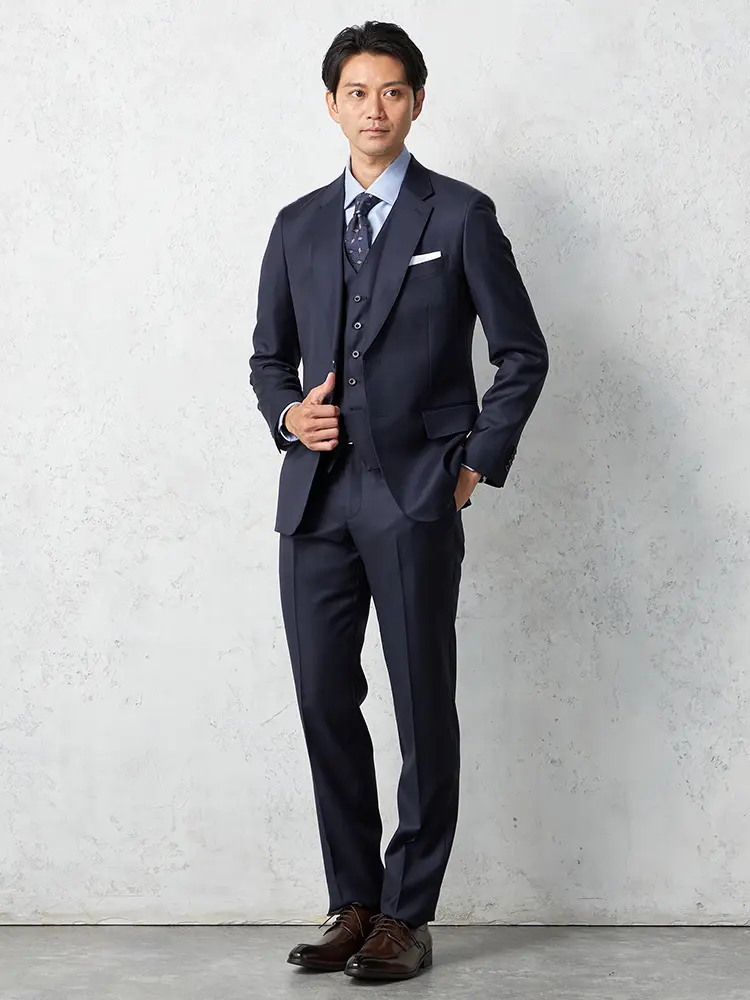 【上下ウォッシャブル】スリーピーススーツ2つボタンウール混ストレッチ・防しわ無地nero秋冬