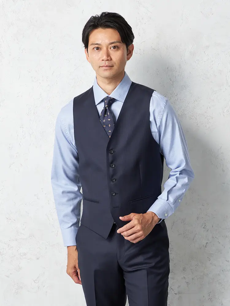 【上下ウォッシャブル】スーツ2つボタンイージーケアネイビーストライプフュージョンクラブ