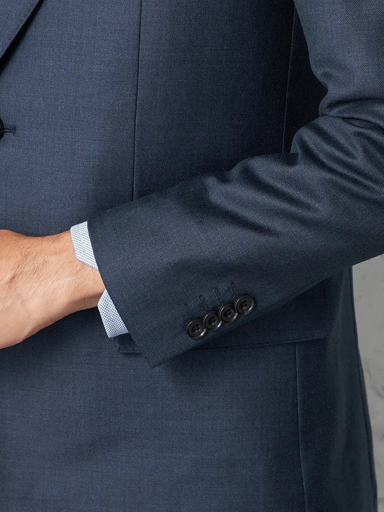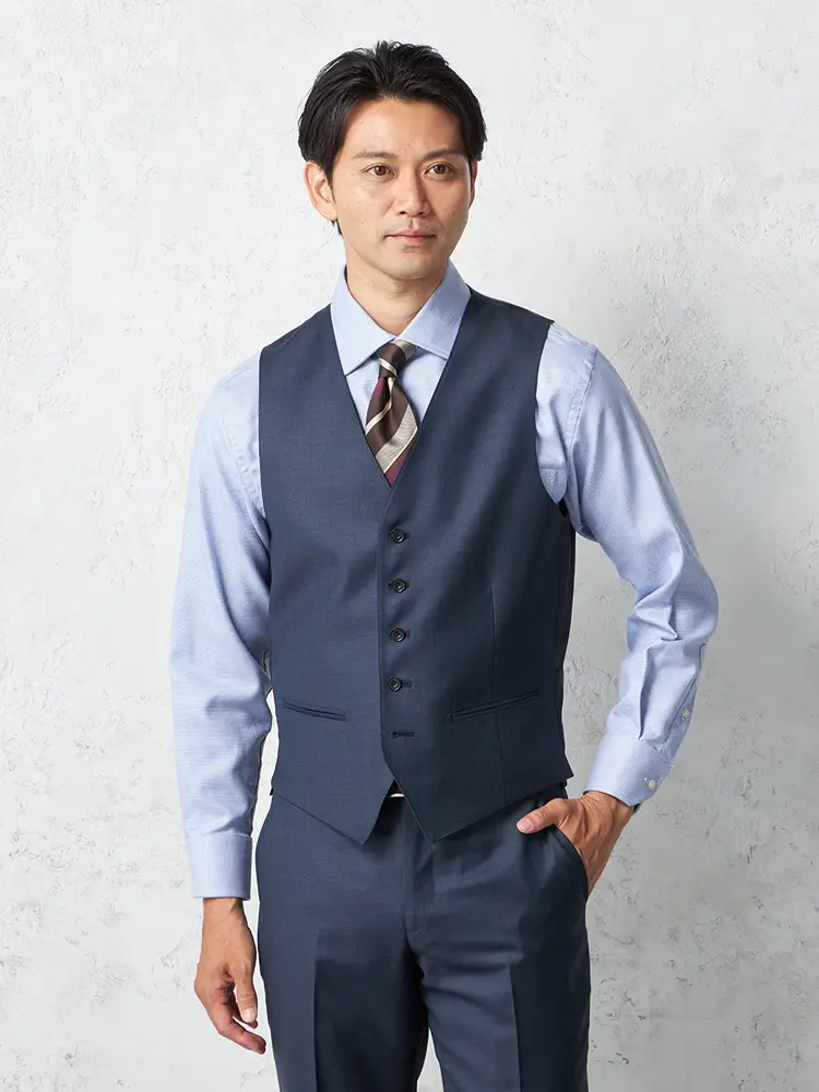 大人の着こなしを演出するセンターベントのノータックスリーピーススーツ。