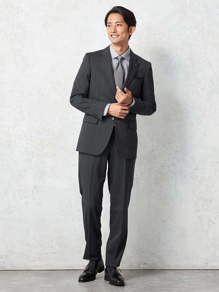 【上下ウォッシャブル】スーツ2つボタンツーパンツイージーケアブラックストライプフュージョンクラブ