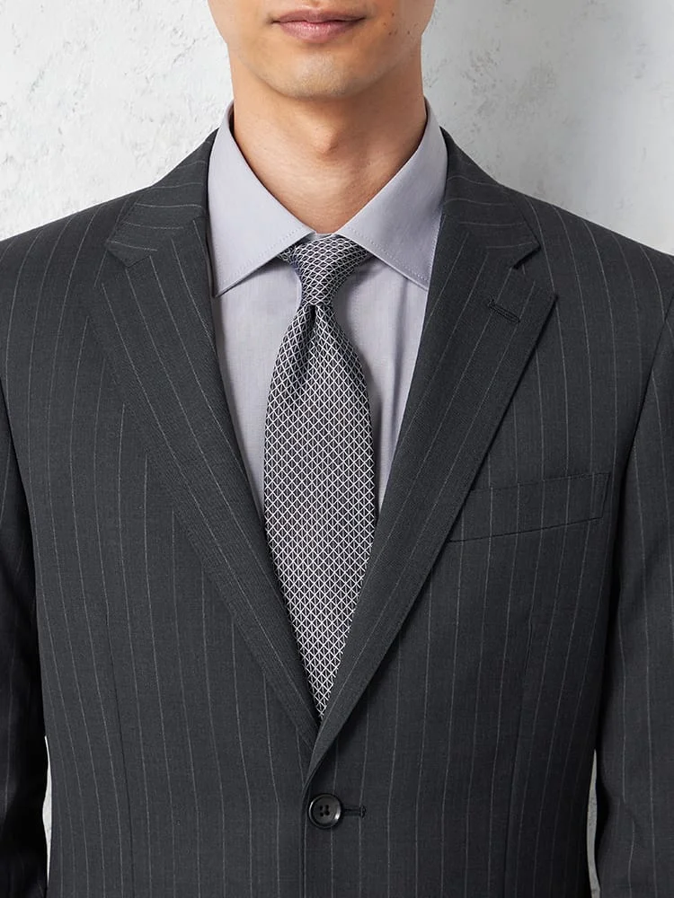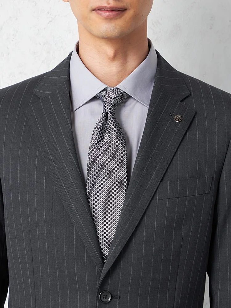 ラペルの幅やポケット仕様などはベーシックで、取り入れやすさにも配慮した一着。