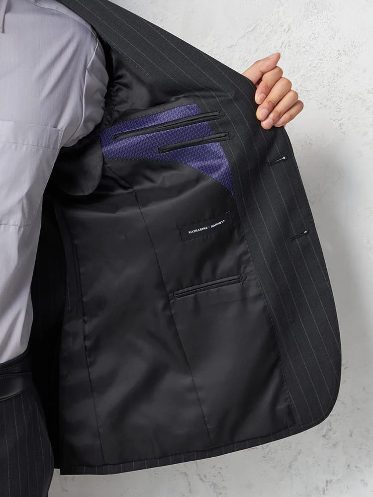 【KATHARINE E HAMNETT-キャサリン・イー・ハムネット-】スーツ 2つボタン 上下ウォッシャブル サスティナブルウール混 ブラック 織柄