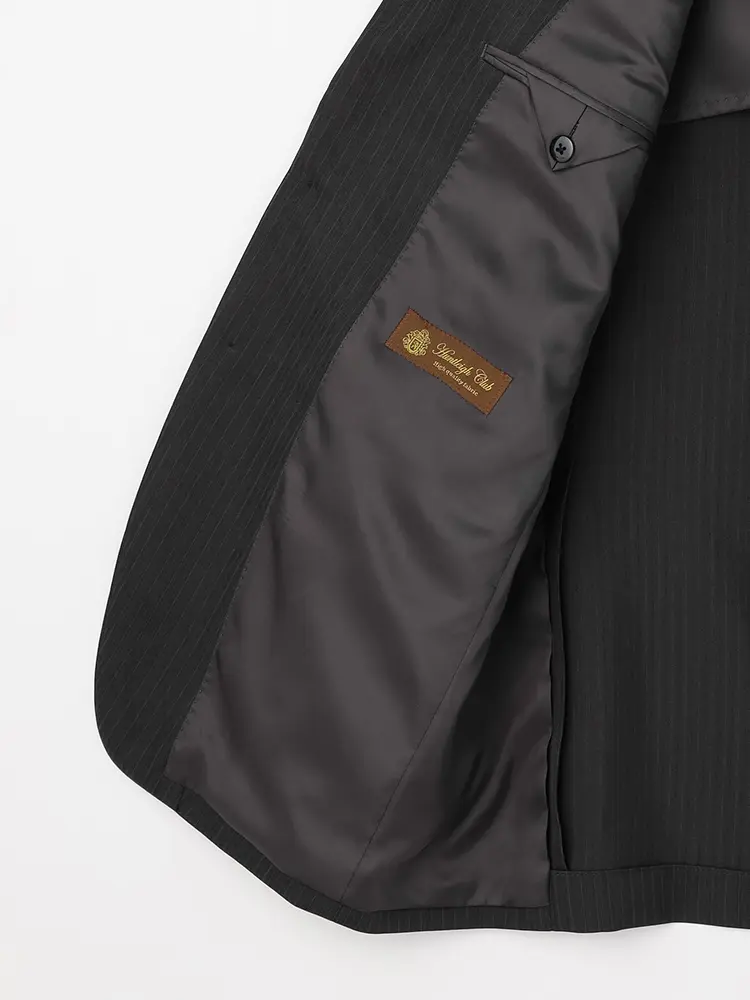 ジャケットは背抜き仕立てで、センターベントを入れた動きやすいデザイン。