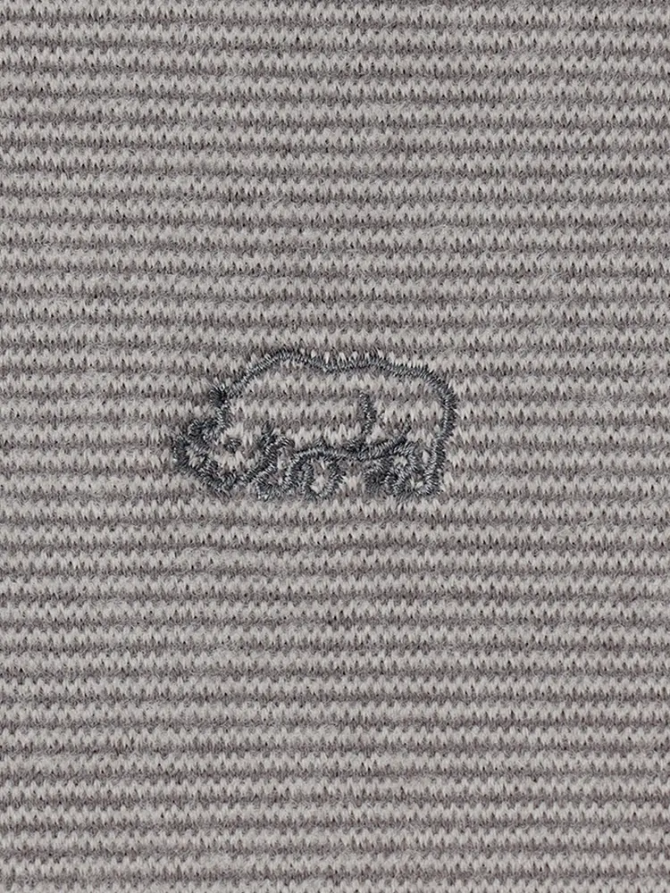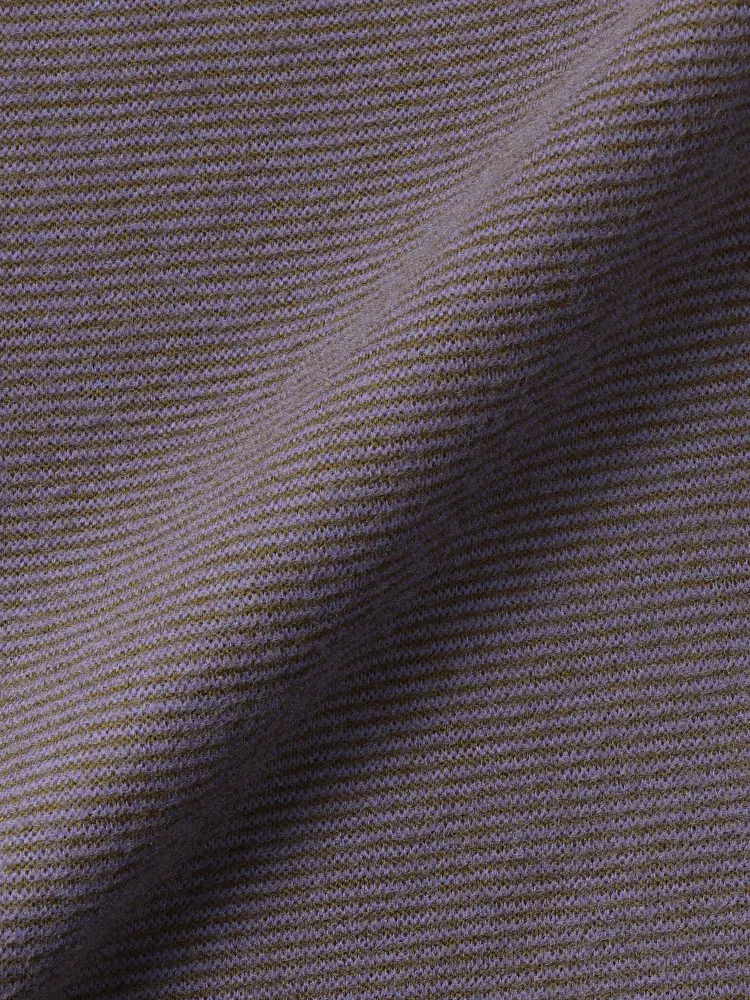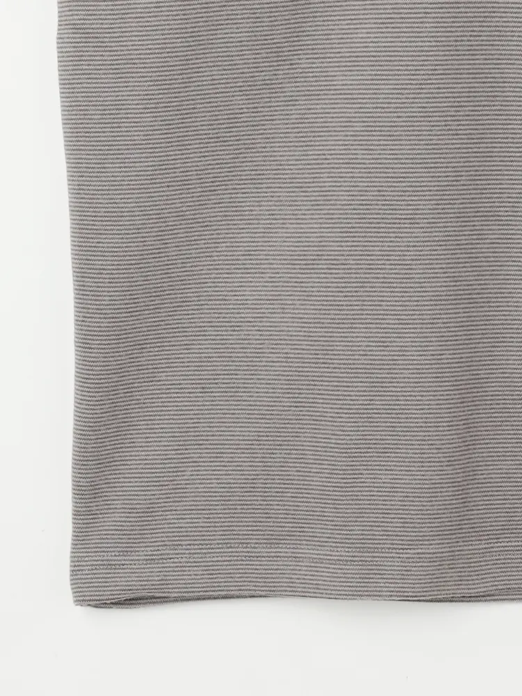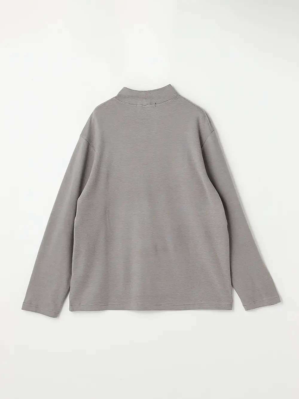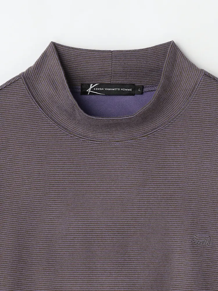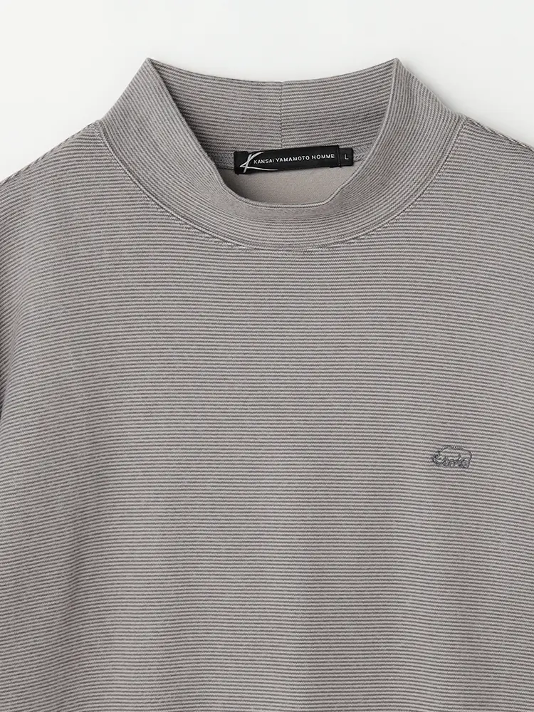 細ボーダー柄をあしらった長袖ハイネックカットソー。