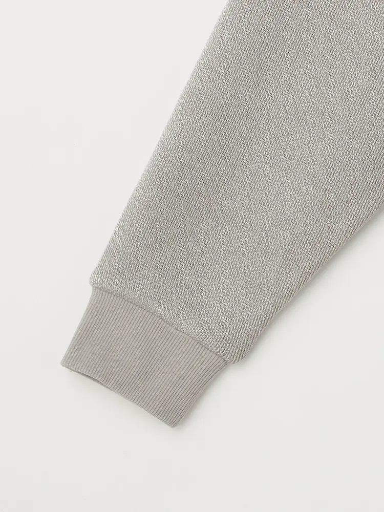 厚みのある柔らかな起毛素材を使用しており、袖口と裾はトレーナーのようなリブ仕様になっています。