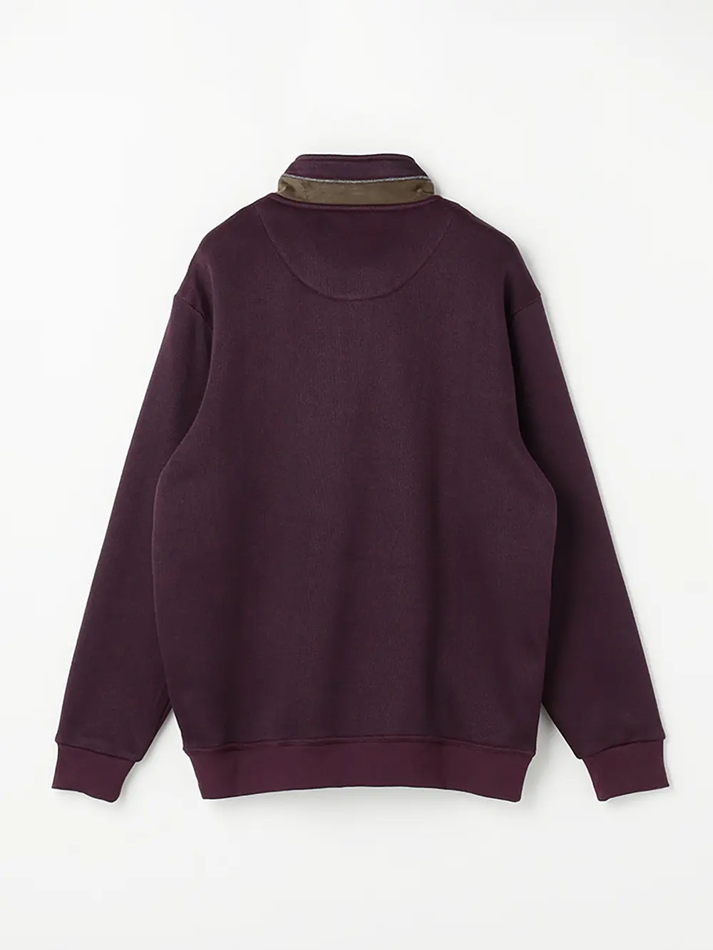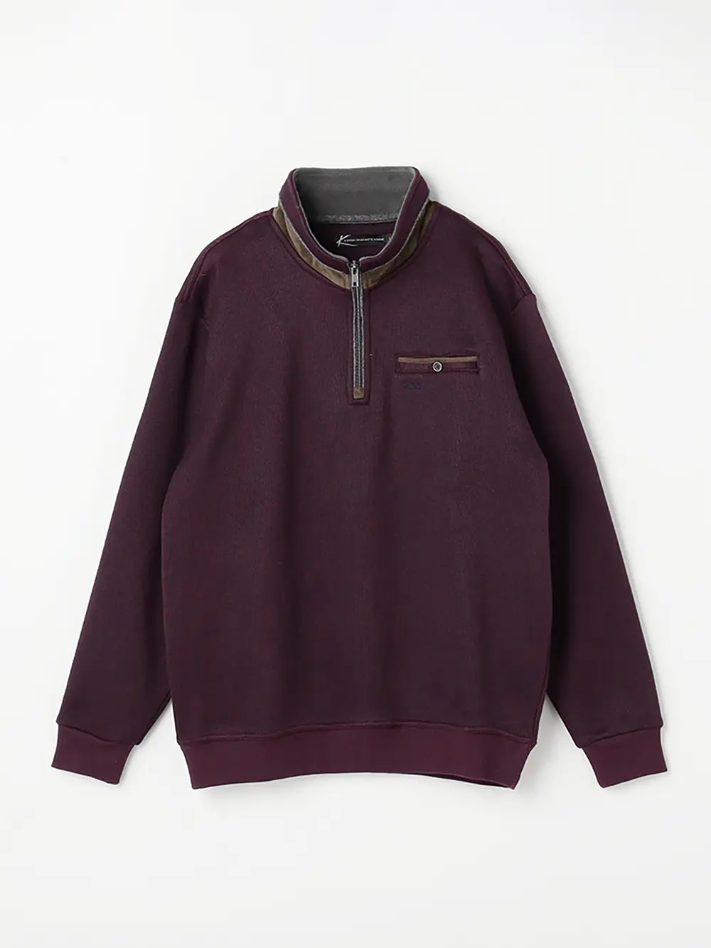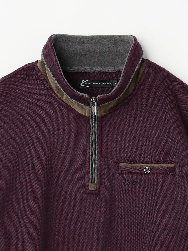 スタイリッシュなハーフジップ式の長袖プルオーバー。