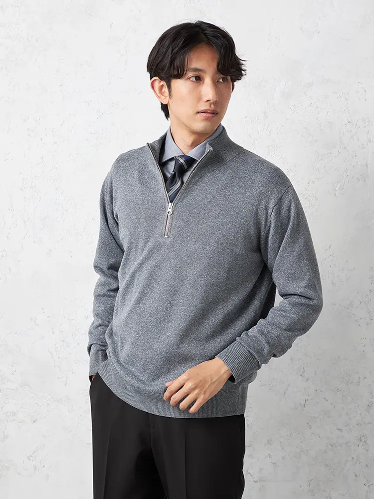 【TOKYO RUN】 12G天竺 ハーフジップニット カジュアルインナー ウォッシャブル 抗ピリング 秋冬