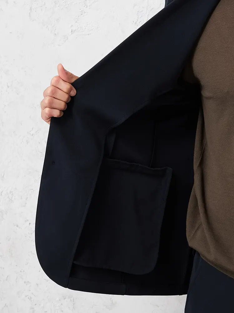 切り込みが1本のセンターベントデザインです。細身でスッキリとしたシルエットが特徴で、快適な着心地を提供します