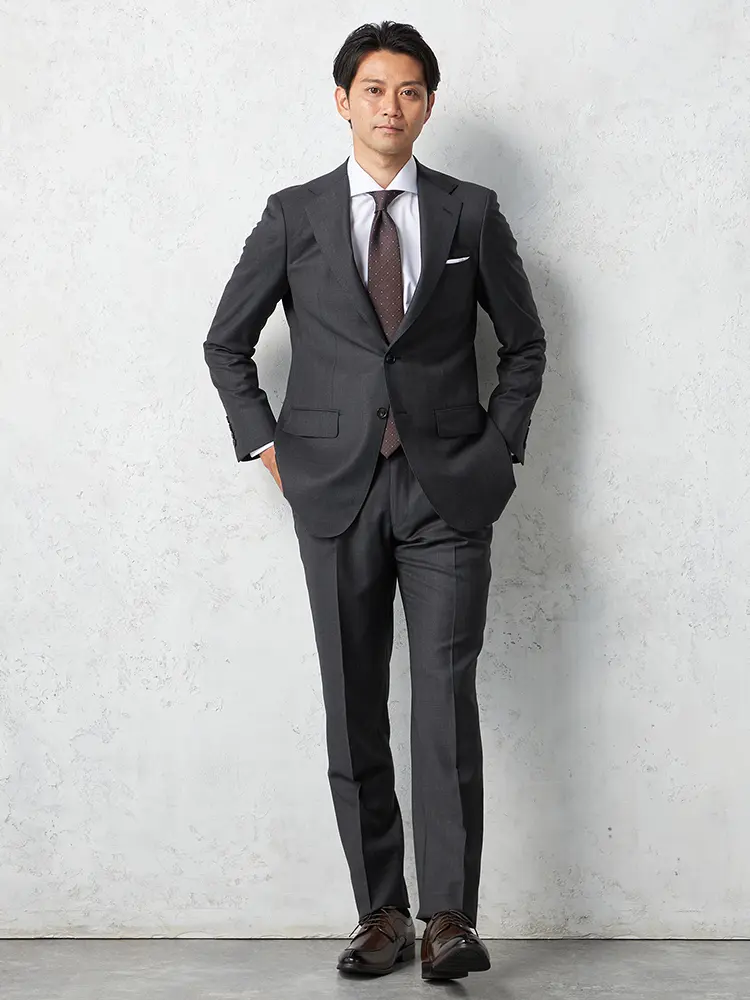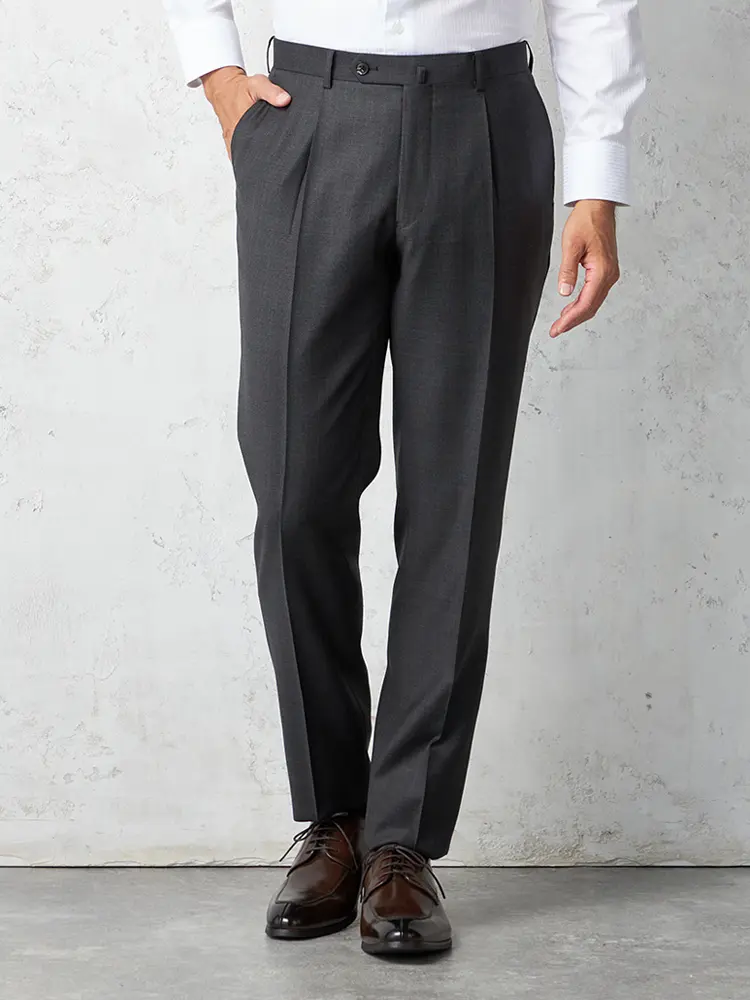 パンツはクラシカルで落ち着いた印象を与えるワンタック仕様。