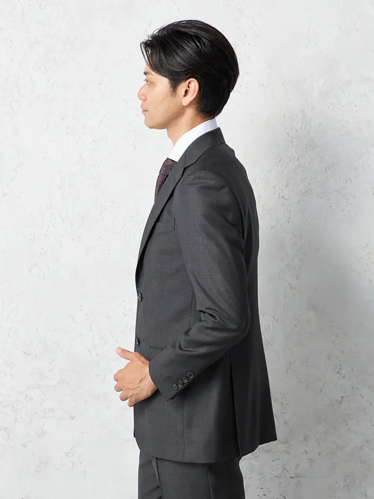 裏地は背抜き仕立て、サイドベンツで動きやすさを付与しました。