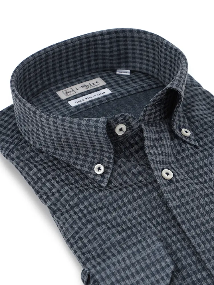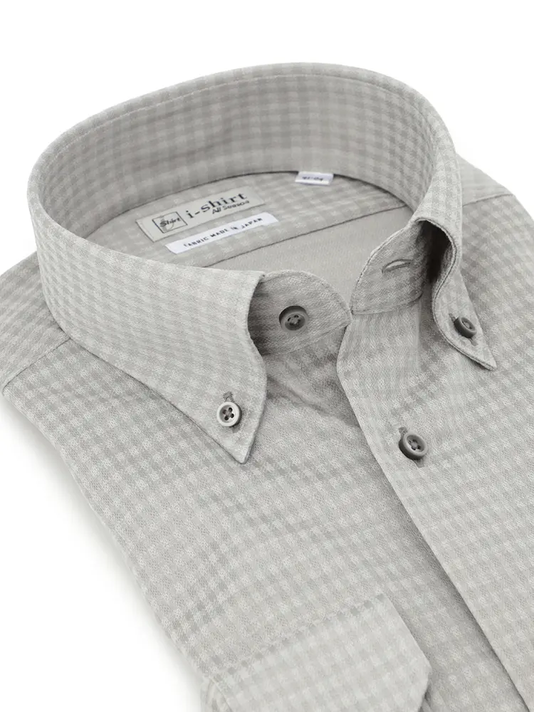 【即納】WEB限定【完全ノーアイロン】長袖アイシャツセミワイドストレッチミニチェック柄i-shirt通年