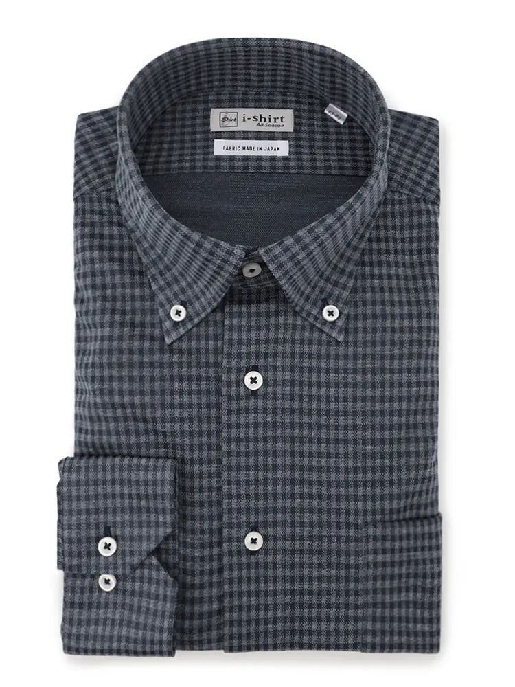 【アイシャツ】長袖Yシャツボタンダウンチェック抗菌加工吸汗速乾形態安定通年