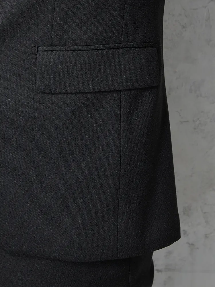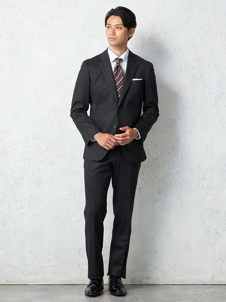 【上下ウォッシャブル】スリーピーススーツ2つボタンウール混ストレッチ・防しわ無地nero秋冬