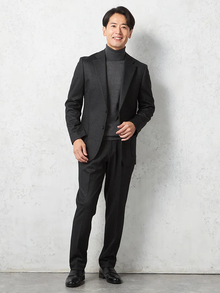 尾州産のウール混ジャージーを使用していて、動きやすく快適な着心地。