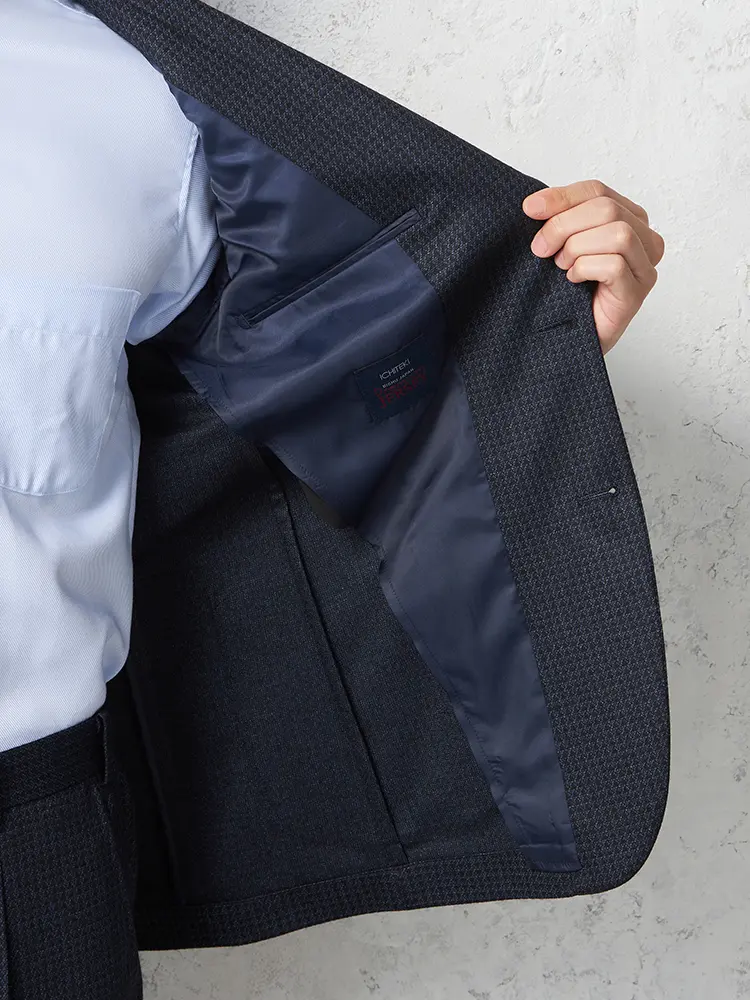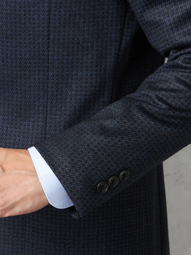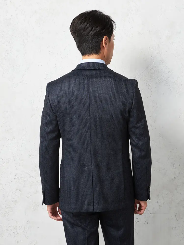 【軽量】プリントニットジャケット2つボタンウォッシャブルストレッチネイビー小格子【i-Jacket-アイジャケット-】秋冬