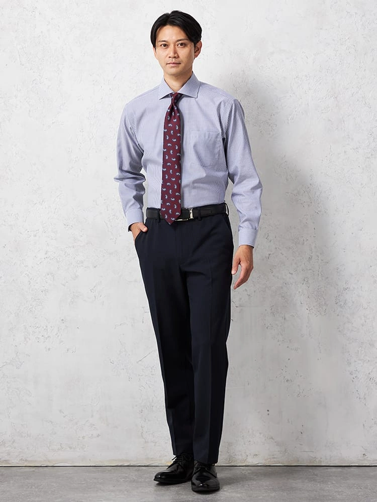 ご自宅ではもちろん、オフィスで着られるきちんとさを兼ね備えたベーシックなアイテム。