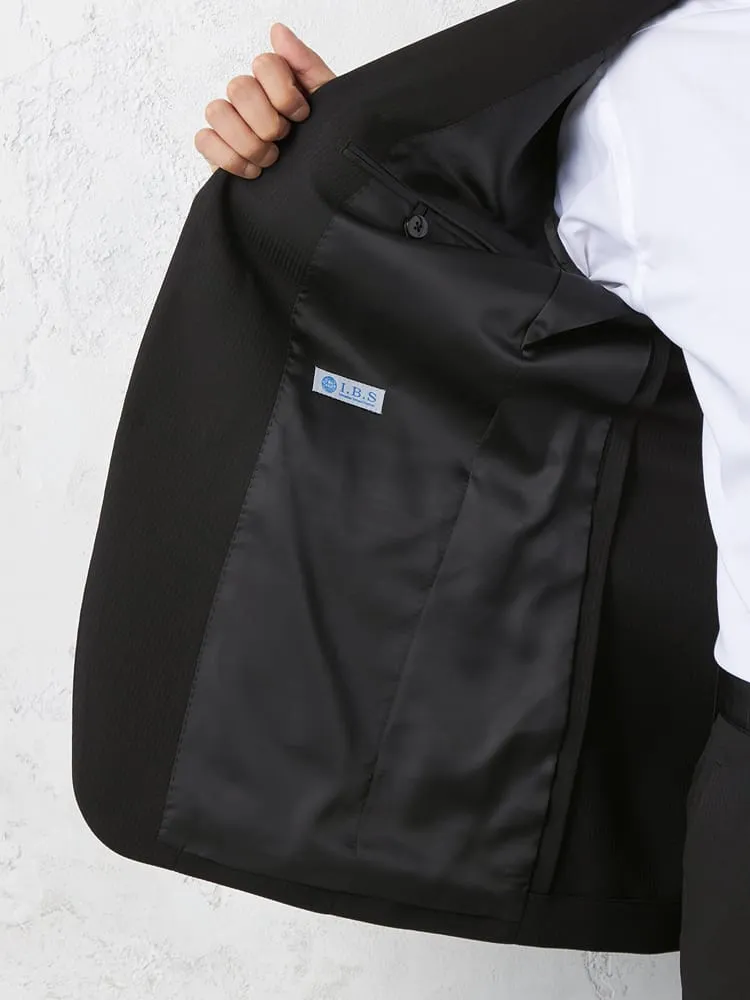 【即納】スーツ2つボタン【WEB限定】4WAYストレッチストライプブラック通年