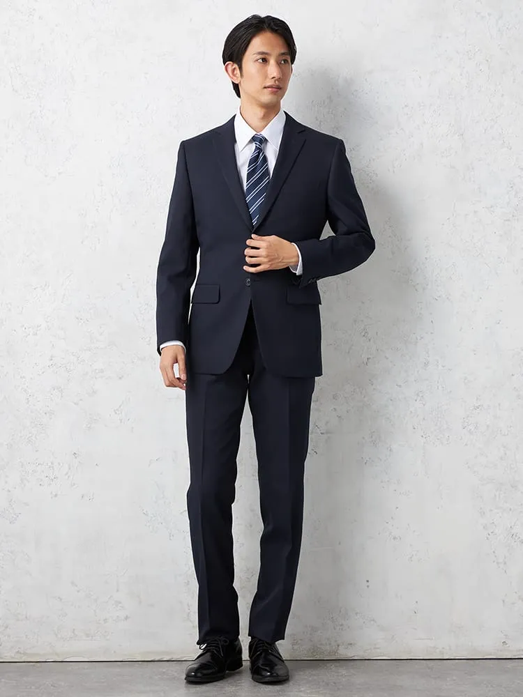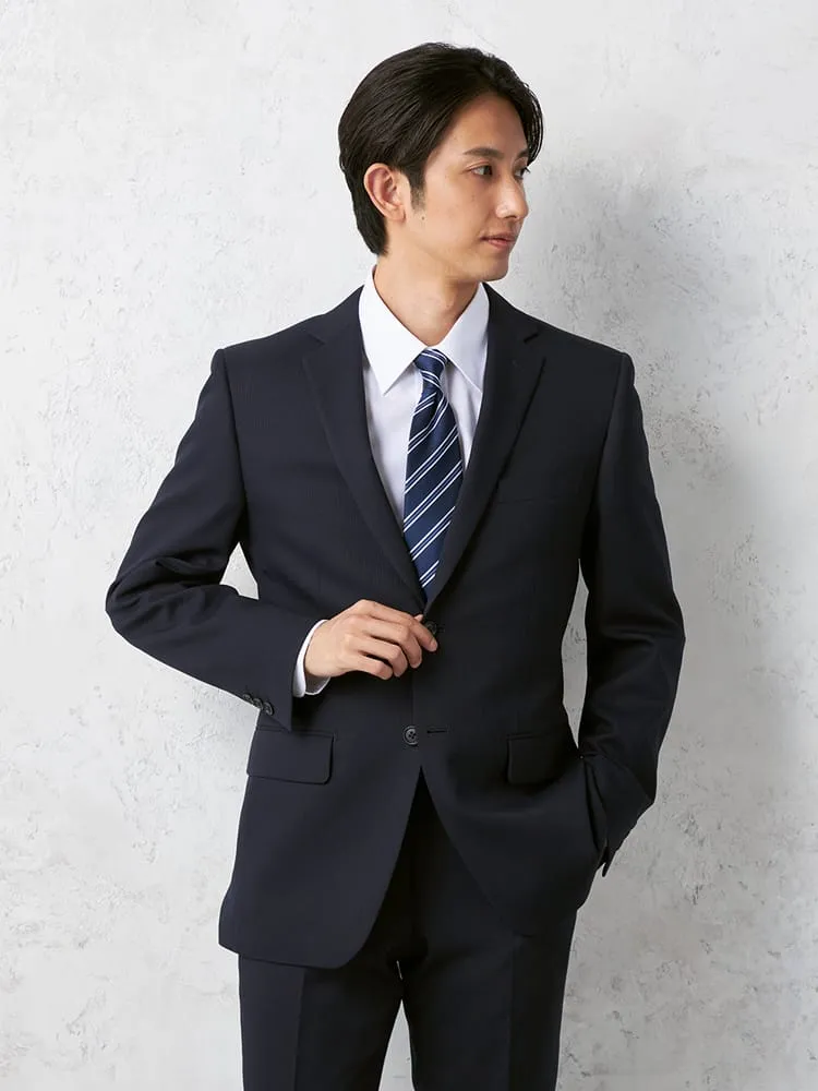 【上下ウォッシャブル】スーツ2つボタンイージーケアネイビーストライプフュージョンクラブ