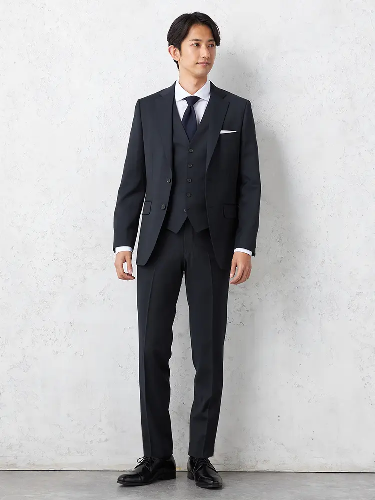 ビジネスでもセレモニーでもエレガントに決まる、スリーピーススーツ。