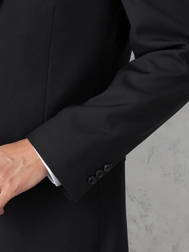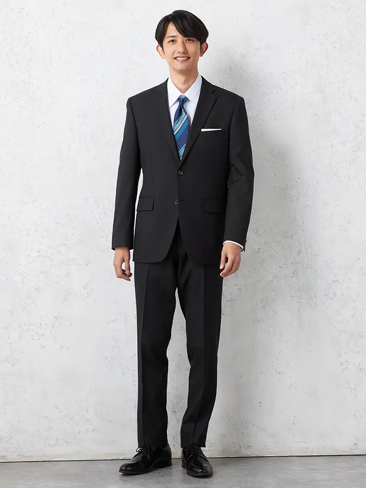 シーンや年代を問わず幅広く活躍するブラックスーツ。