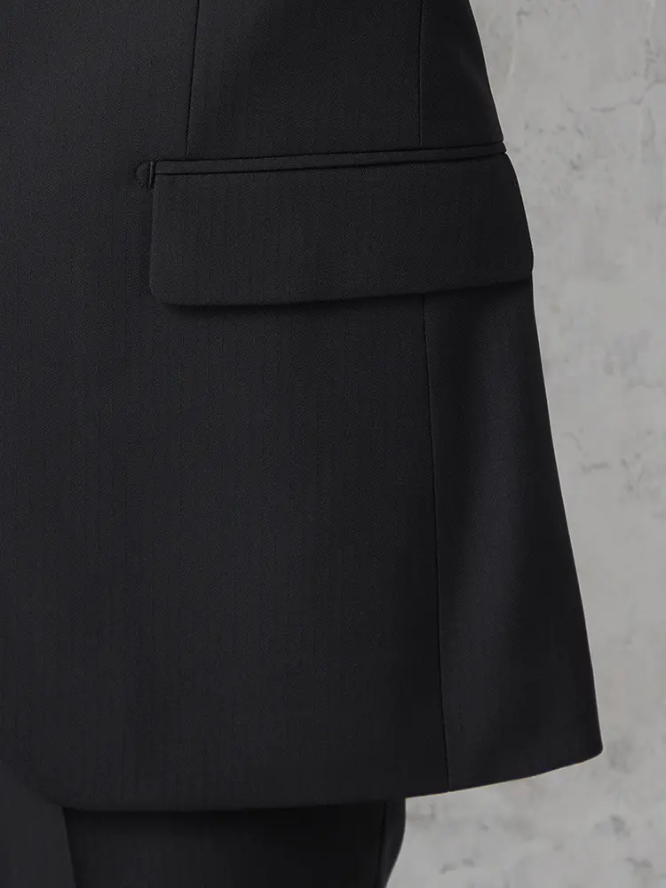 切り込みが1本のセンターベントデザインです。細身でスッキリとしたシルエットが特徴で、快適な着心地を提供します