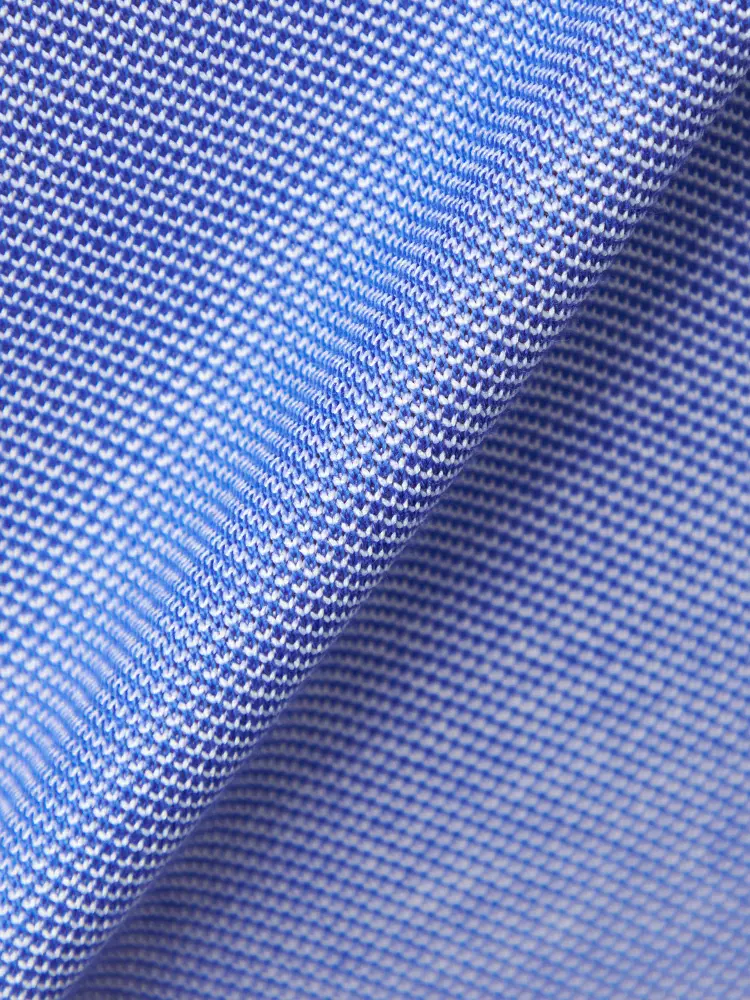 衿元は形が崩れにくいボタンダウン仕様、後ろ衿に高さを出しジャケットの汚れを防止。