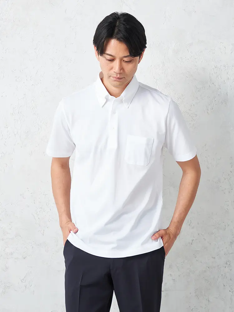 オフィスカジュアルやクールビズに最適な半袖ポロシャツ。