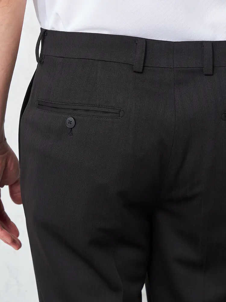 腰回りがすっきり見えるノータックから裾へ向けてテーパードをかけ、美しいシルエットを実現。