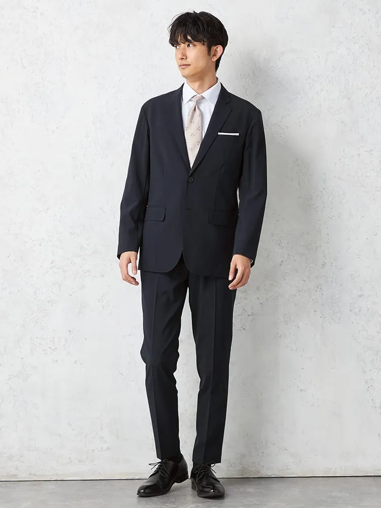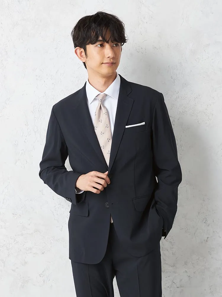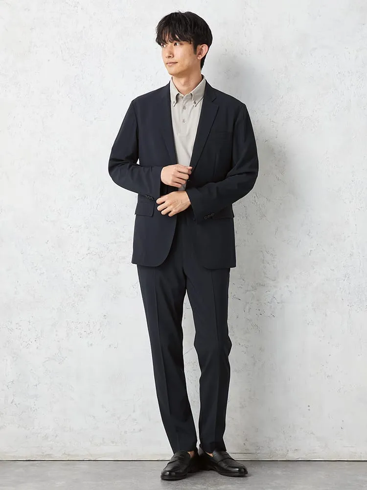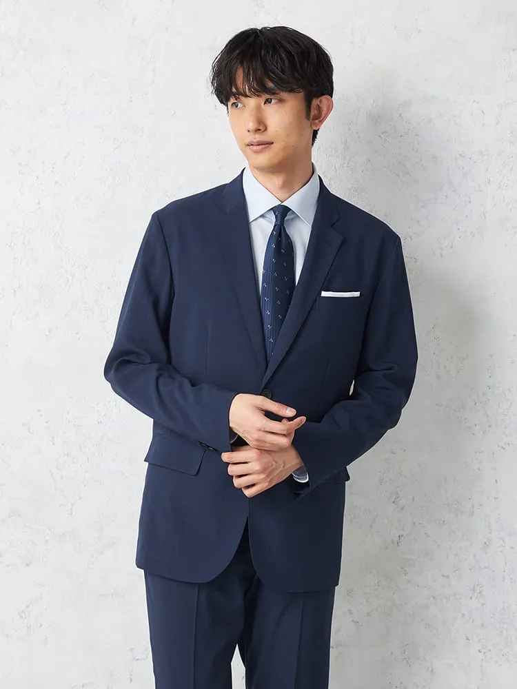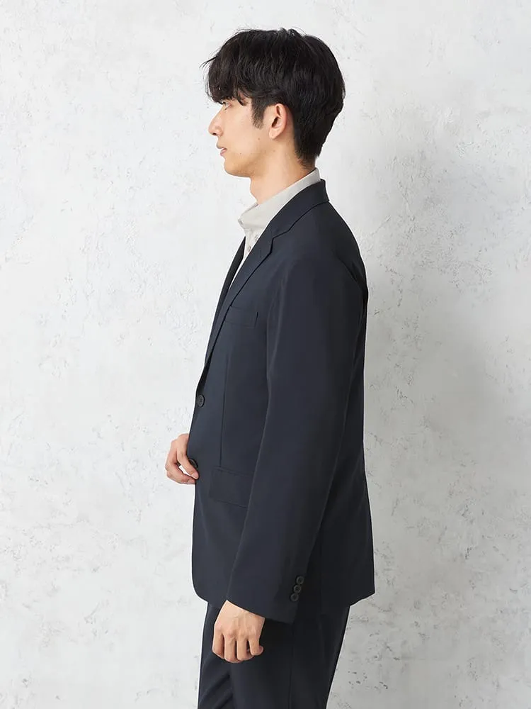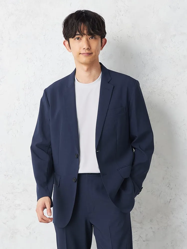 【AIR SUIT】 セットアップ ジャケット 2つボタン 防シワ(イージーケア) ストレッチ 通年 吸汗速乾 UVカット 春夏(ネイビー)