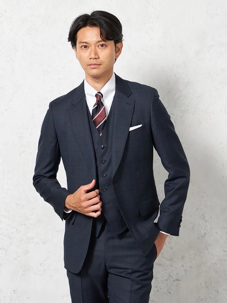 【即納】スーツ2つボタン【WEB限定】上下ウォッシャブルチェックネイビー通年